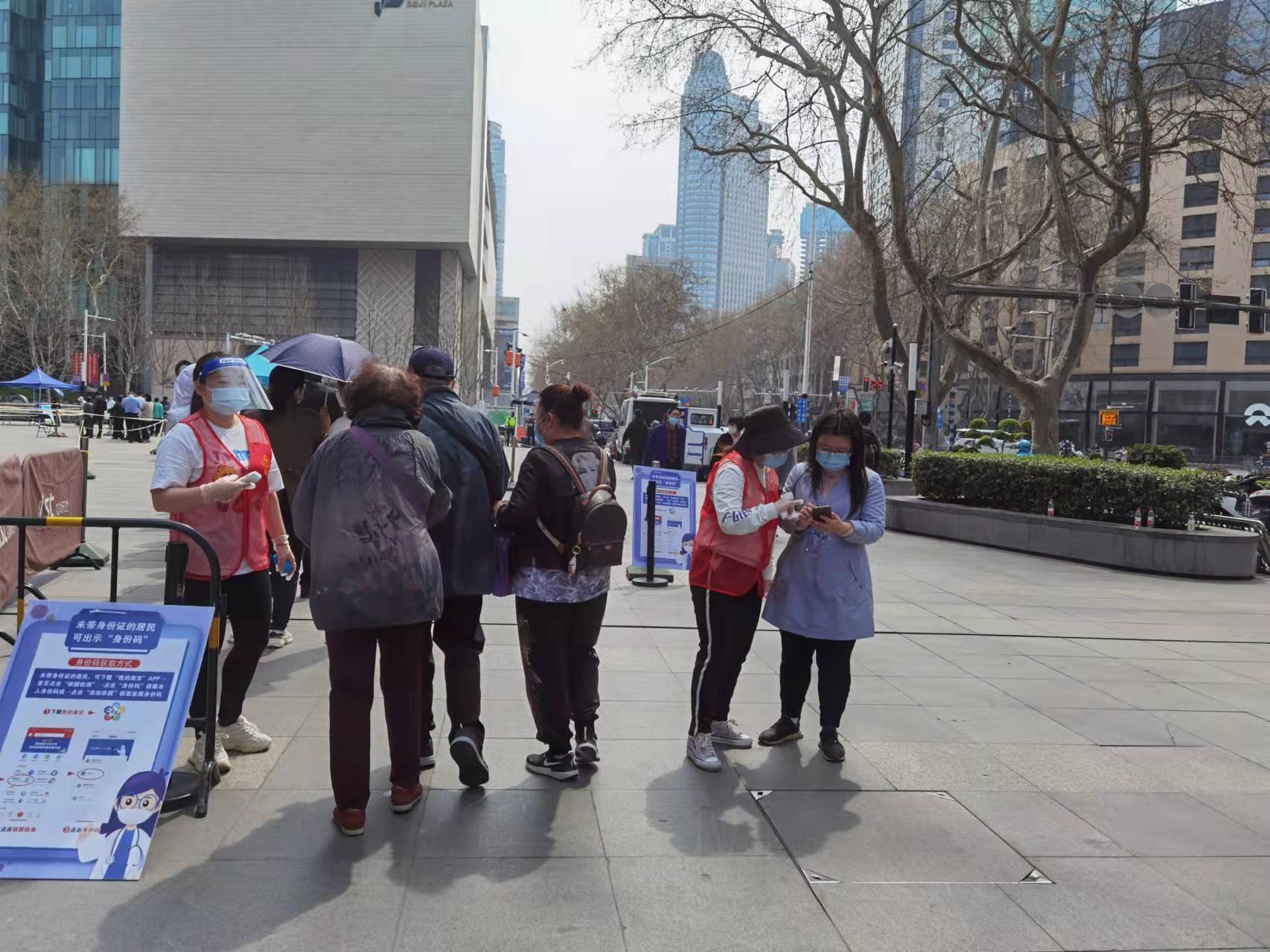3月16日當(dāng)天,在接到志愿者需求不到半個小時,中山大廈立刻上報志愿者,并組織志愿者趕往南京艾尚天地核酸檢測點,負責(zé)隊伍引導(dǎo)、掃碼登記、分流待檢人員等,認真把好每一關(guān),確保核酸檢測工作有序進行。彰顯了中山大廈“站得出、頂?shù)蒙?、打得響”的志愿者形象?/span>