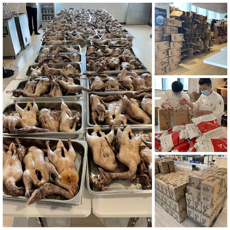 近日來(lái),中山大廈精品酒店接到兩批制作中秋鹽水鴨禮盒的訂單,精品酒店機(jī)關(guān)餐廳分管領(lǐng)導(dǎo)迅速召開(kāi)生產(chǎn)會(huì)進(jìn)行周密部署,機(jī)關(guān)餐廳班組所有員工齊心協(xié)力,迎難而上,共同協(xié)作完成了1066只鹽水鴨的制作、533盒的禮盒裝箱。