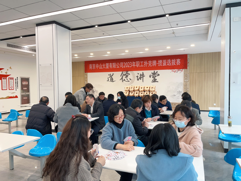 為豐富職工的精神文化生活,營造和諧的工作氛圍,3月31日工會精心準(zhǔn)備,并組織開展了一場摜蛋選拔賽活動?;顒拥玫搅寺毠さ臒崃翼憫?yīng),大家積極報(bào)名踴躍參與。比賽在緊張的氣氛中進(jìn)行,參賽搭檔通力合作、默契配合,充分施展自己的牌技爭鋒角逐。經(jīng)過數(shù)輪較量,最終1組選手獲得選拔賽第一名,代表公司參加2023年江蘇農(nóng)墾職工撲克牌-摜蛋比賽。