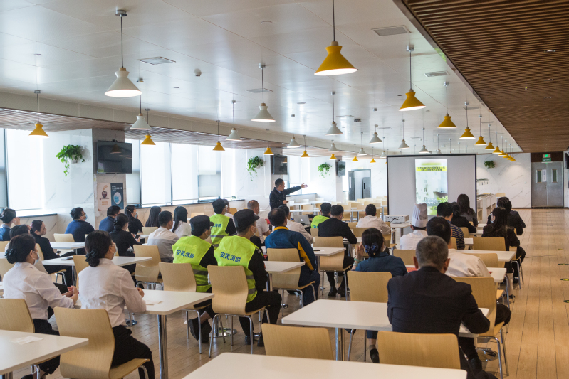 為切實增強員工防火安全意識、掌握基本消防安全知識,提升火災處置能力,做到防患于未然,5月23日下午,結合本次“人人講安全 個個會應急”安全生產(chǎn)月主題,集團公司、物業(yè)公司及南京中山大廈有限公司建鄴分公司相關工作人員50余人,在機關餐廳接受了消防安全知識培訓并進行了疏散逃生應急實操演練。