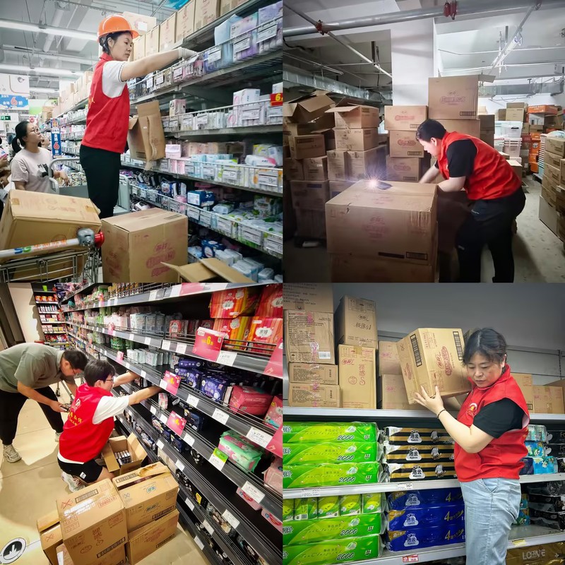工作期間正逢三伏天氣,隊員們不僅要在狹小的倉庫中找尋到商品,還需在擁擠的人群中伏身將產(chǎn)品鋪滿貨架,幾個小時下來,已是汗流浹背、氣喘吁吁。但同志們不叫苦、不叫累,“商旅先鋒”始終在線,充分彰顯了一個支部就是一座堡壘、一名黨員就是一面旗幟,一枚黨徽就是一份責任的使命擔當!助銷當天,二十五名黨員干部、積極分子在店共計補充商品一千余件,在以學促干上取得實實在在的成效。