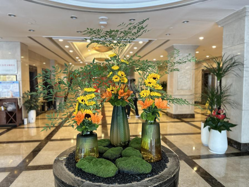 近日,中山大廈酒店大堂進行了一場寓意深遠的花藝布置調(diào)整。此次調(diào)整精選了數(shù)種富有象征意義的花卉作為主花,旨在以花卉之美傳遞對迎戰(zhàn)高考學(xué)子們的美好祝愿與鼓舞。其中,綠毛球象征著生機與活力,玉簪葉則寓意純凈與智慧,向日葵代表著陽光、開朗與熱情,南天竹則體現(xiàn)了堅韌與毅力的品質(zhì)。同時,融入代表和諧、吉祥的百合,使整個花藝布置更顯雅致與吉祥。
