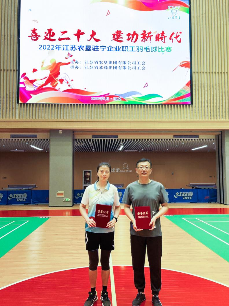 2022年8月3日下午,王毅、馬麗云兩名同志代表公司參加集團(tuán)工會(huì)舉辦的“喜迎二十大 建功新時(shí)代”2022年江蘇農(nóng)墾駐寧企業(yè)職工羽毛球比賽,獲得男子單打三等獎(jiǎng)、女子單打三等獎(jiǎng)的好成績(jī)。